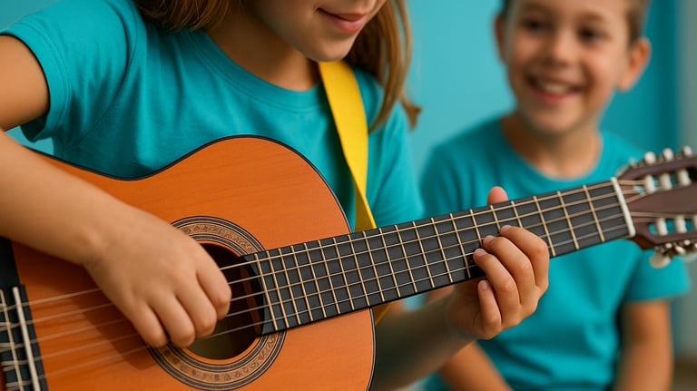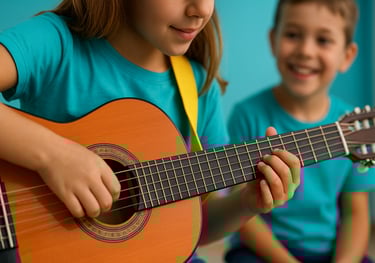 Aprenem acords i ritmes des del primer dia, amb cançons motivadores. Treballem oïda musical, coordinació i expressió.